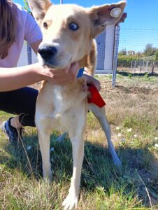 Оваа прекрасно кученце е младо, весело и полно со љубов. Средна големина со убаво светло крзно и паметни шарени очи кои едвај чекат да видат добар пријател.